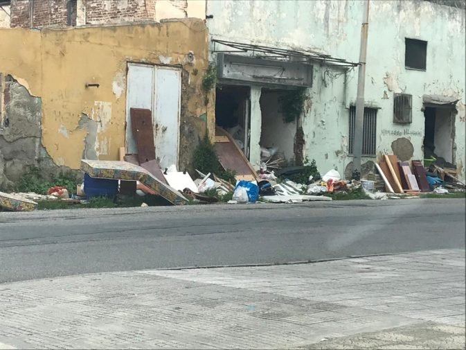 Cataste di materiali di rifiuto all’interno di quello che tanti anni fa era il locale in cui operava una panetteria, poi chiusa all’avvio delle complesse operazioni di sbaraccamento del terreno retrostante, culminate poi nella realizzazione dell’antistante complesso di edilizia residenziale pubblica. Questo ammasso di rifiuti di ogni tipo si trova all’incrocio tra via Seminario Estivo